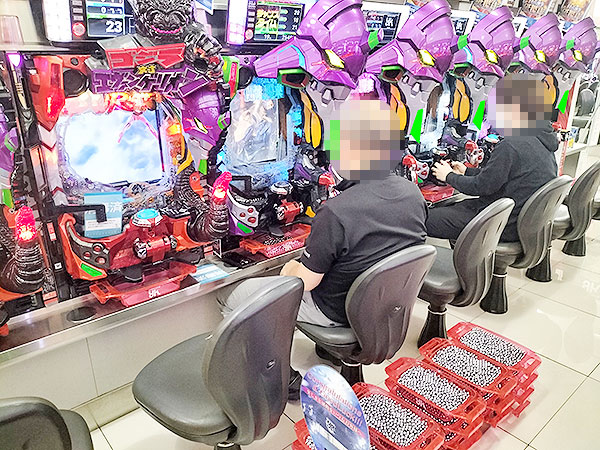 17時過ぎの500円/116玉パチンコをチェックすると「新世紀エヴァンゲリオン〜未来への咆哮〜」や「P真・花の慶次2〜漆黒の衝撃〜EXTRA RUSH」が盛況の様子。プレイヤーたちの満足気な表情が印象に残っている。
