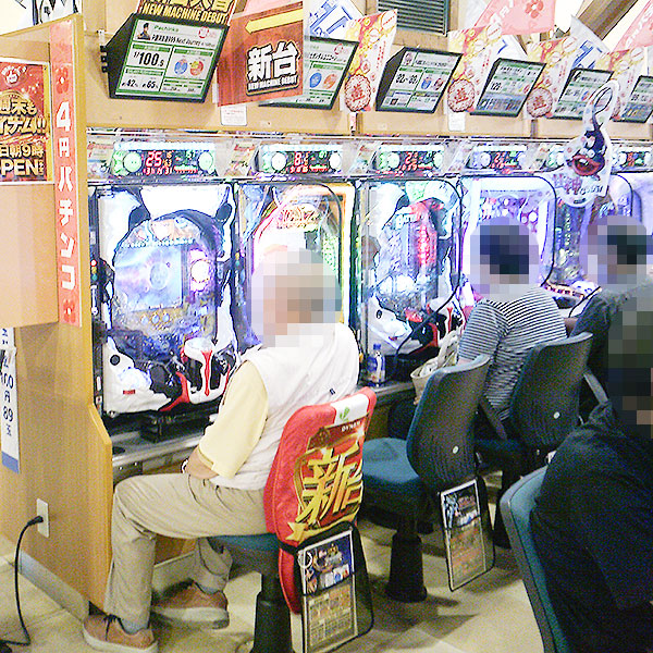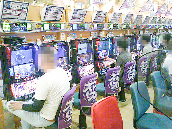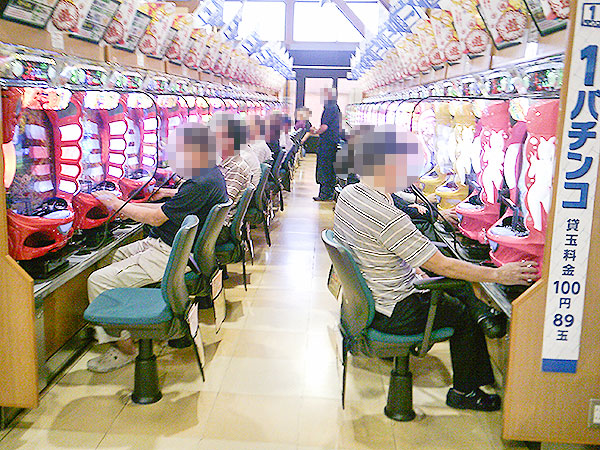 100円/89玉パチンコは海物語シリーズの支持が厚く、見事な活躍をするプレイヤーがあちこちで見られた。