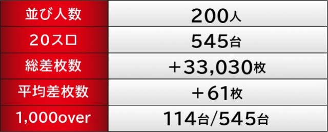パチスロ総差枚数+33,030枚・パチンコ総差玉数-123,420玉という結果により、「楽園相模原店」の「ヒーローズレポート」はパチスロのみの勝利で幕を閉じた。パチンココーナーは大きなマイナスを築いてしまったが、それぞれの台で楽しめていた様子。次回こそ結果を残してほしいと願うばかりだ。パチスロコーナーは連勝をキープしているため、今後とも同店の動向や情報からは目が離せそうにない!ファン諸氏は注視してもらうとともに、入念な準備を進めておくことを推奨するぞ!