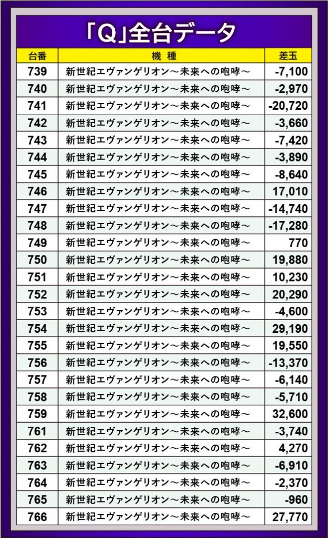 設置台数58台と店内最大を誇る『新世紀エヴァンゲリオン〜未来への咆哮〜』は、482番台+44,010玉・759番台+32,600玉といった大きな熱量を確認できる。各台で大きなマイナスが見られるが、それもファンが同機種に対する大きな信頼の表れだろう。結果に左右されず、今後も同機種を注目する必要があるのは確かだ。