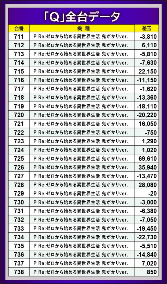 対して『P Re:ゼロから始める異世界生活 鬼がかりver.』『Pフィーバー 機動戦士ガンダムユニコーン』両機種は、凄まじい熱気を放つ台が生まれた。725番台+69,610玉や843番台+52,490玉といった数字は、周りから羨望の眼差しを集めていたに違いない。ほかにも2~3万発OVERが見られるため、遊技していたファンは満足いく結果を得られたことだろう。