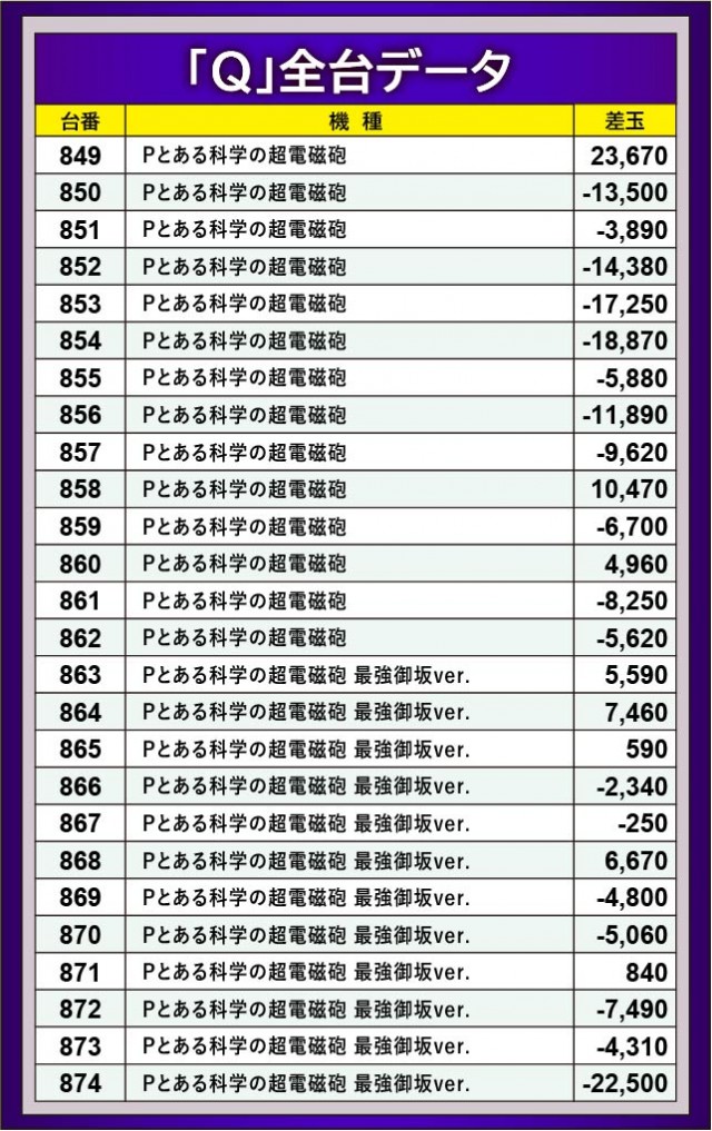 『Pとある科学の超電磁砲』849番台+23,670玉と、こちらでもしっかりと大きな熱気を放っていたのが確認できる。結果こそ恵まれていないが、各々が好感触を得ていた様子で、それは数字から窺うことができるだろう。また『Pとある科学の超電磁砲 最強御坂ver.』でも多くのファンがハンドルを握り、高みを目指していたのが印象的だ。