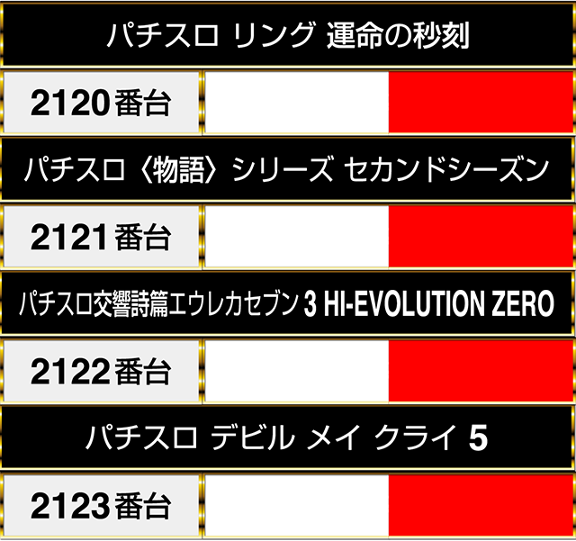 2120番台の『パチスロ リング 運命の秒刻』から2123番台の『パチスロ デビル メイ クライ 5』までにも楽しげなプレイヤーが並んでいた。