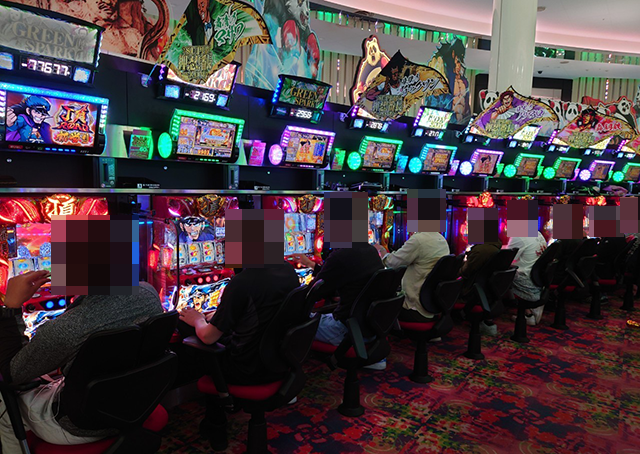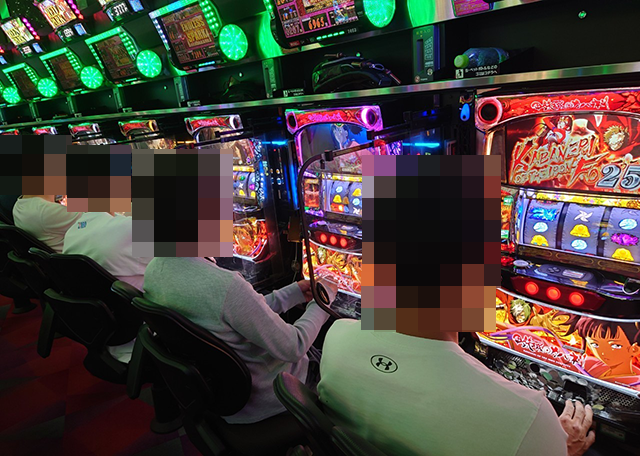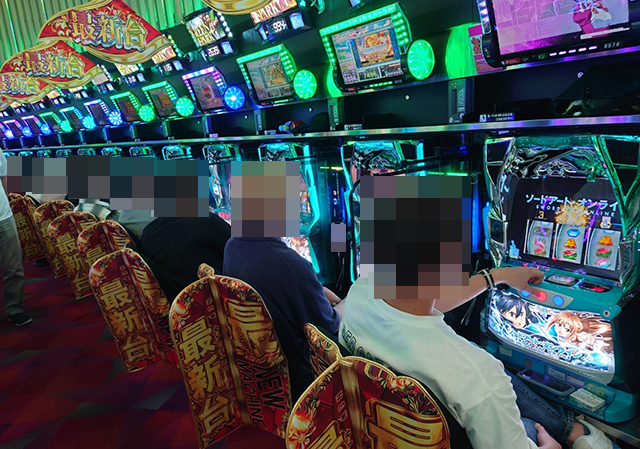 パチスロの状況をうかがうと、さまざまな機種でプレイヤーたちが遊技を楽しんでいた。