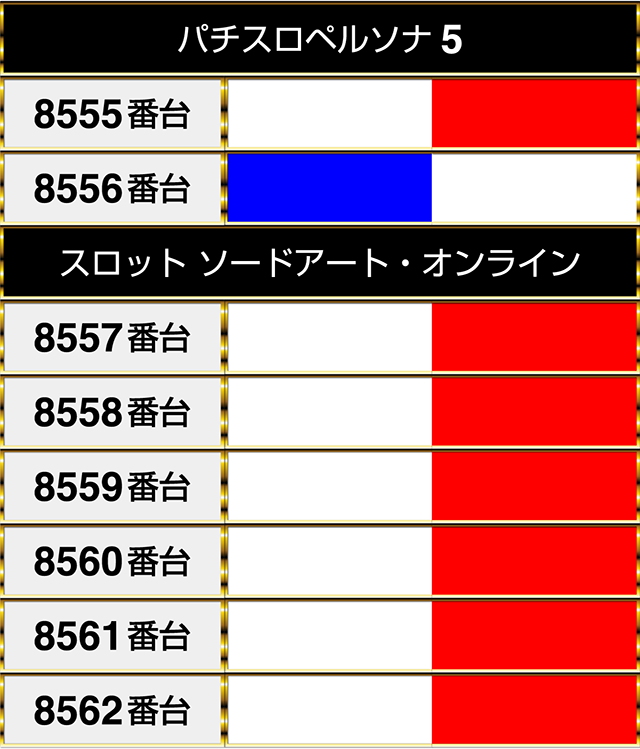 新台である『スロット ソードアート・オンライン』の8557番台から8562番台までが並んでプラスpt!!