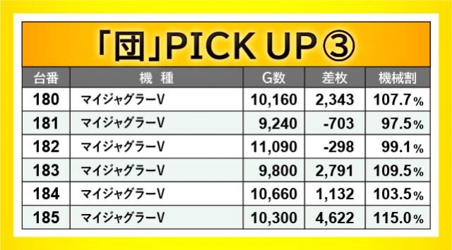 『L ベルセルク無双』217番台+11,170枚という大きな熱量を確認できるばかりか、『パチスロ炎炎ノ消防隊』262番台+6,485枚や『L主役は銭形4』272番台+7,137枚などが見られる。また『マイジャグラーⅤ』『スマスロ北斗の拳』の両台から万回転OVERが発生。そのほかの台についても8~9千回転台をマークしており、当日の状況が如何に良好だったのかが窺えるだろう。