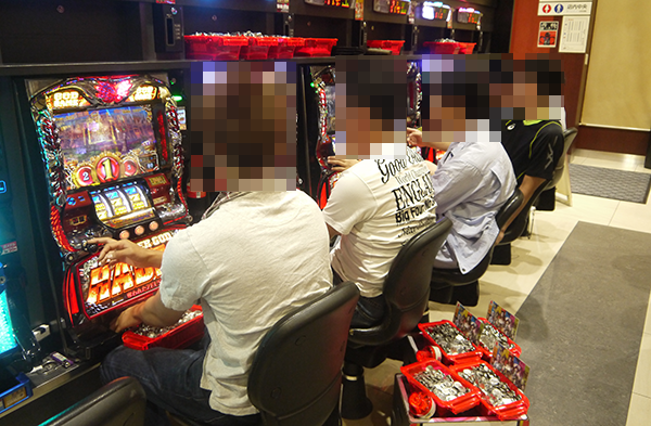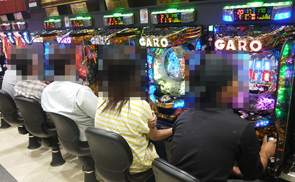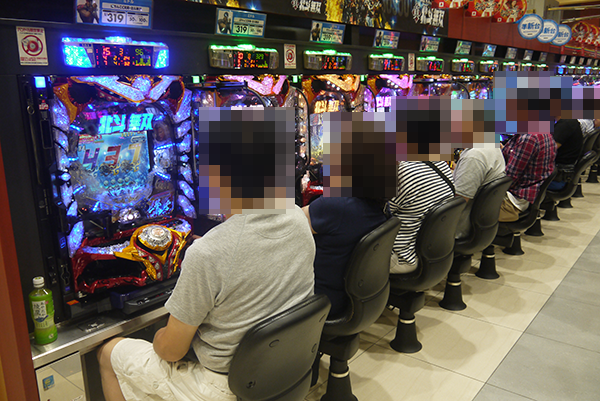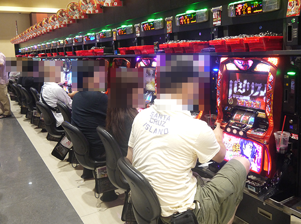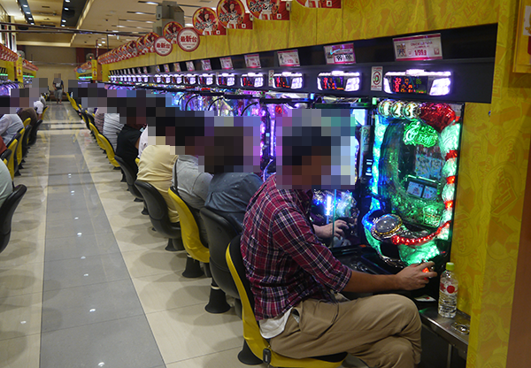 ホール内の様子をみると、大勢のプレイヤーが遊技をおこなっており、いくつもの場所に鮮やかな光景が広がっていた。