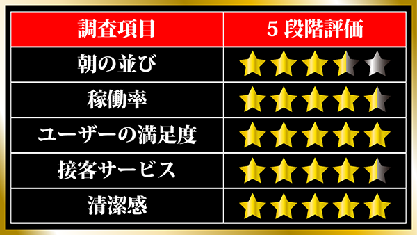 スタッフたちは開店前における朝の並びからテキパキと動いており、ホールの周りもしっかりと清掃。もちろん、ホール内もつねに清潔なイメージであった。