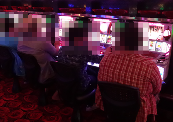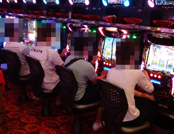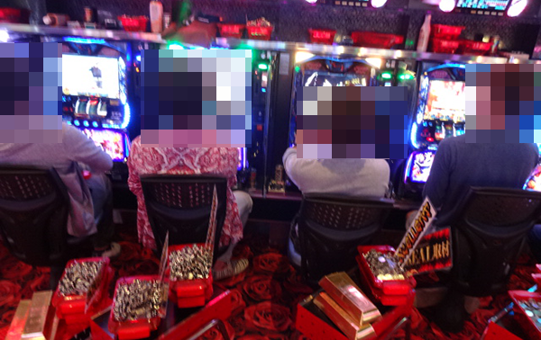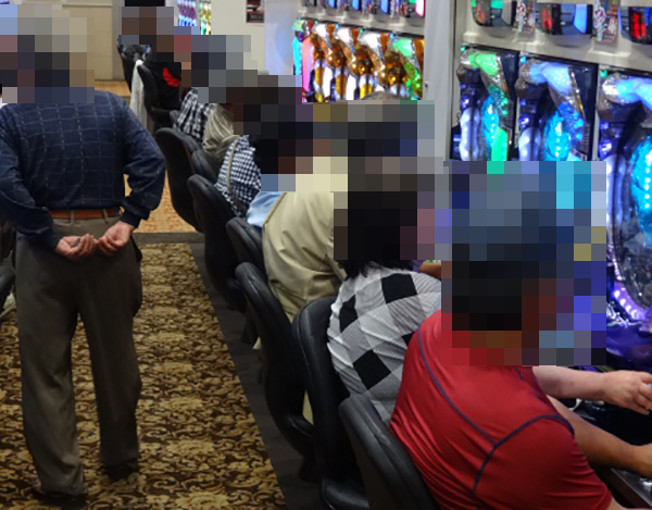 1円パチンコも人気で、海物語シリーズがほぼ満席。
