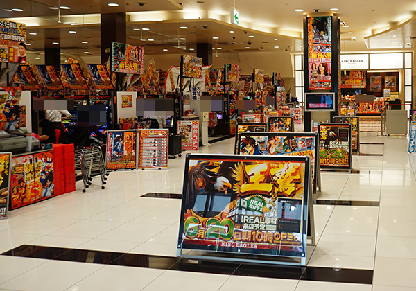 大勢のプレイヤーでにぎわう「キングイーグルズ大分明野店」は、明るく、楽しい雰囲気が感じられる素敵なホールであった。