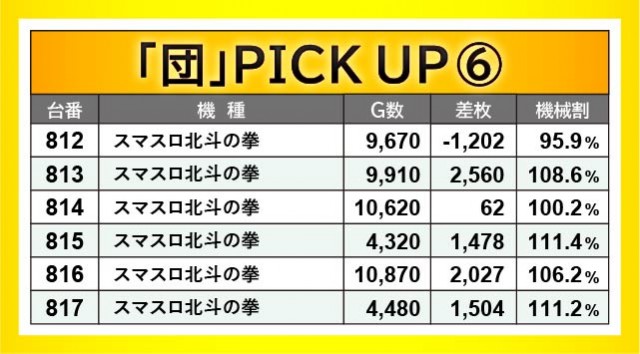 『パチスロ甲鉄城のカバネリ』も同様に、横並びで活気と熱気を形成するエリアを確認できた。全台プラスとはならなかったが、それでも734番台+4,607枚や735番台+6,250枚など、人気機種としてしっかりと存在感をアピール。また同じく人気機種の『スマスロ北斗の拳』は2台の万回転OVERが発生しており、こちらも大きな活気と熱気を放っていた。
