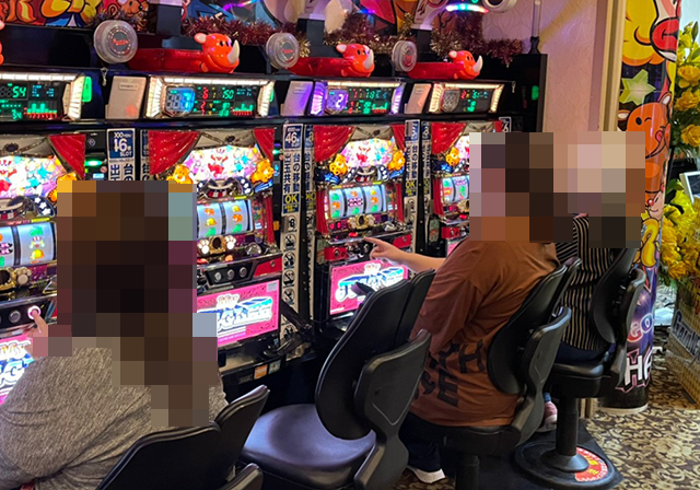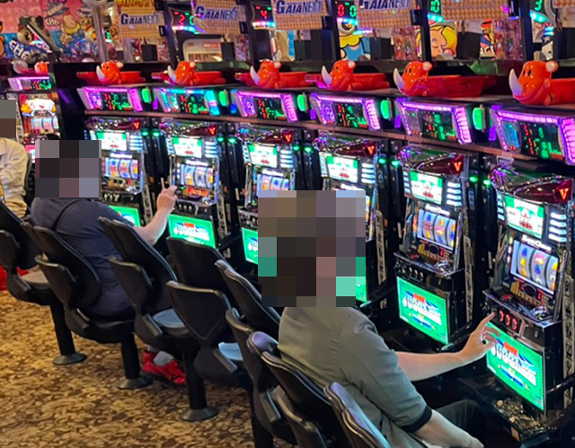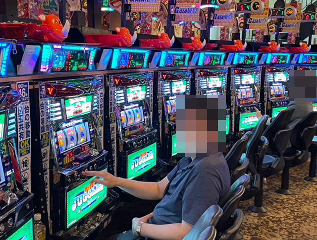 遊技を満喫しているような姿は、にぎやかなパチスロで存在感を放っていた。