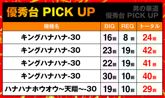 「キングハナハナ-30」から4台、「ハナハナホウオウ~天翔~-30」からは1台をセレクト。