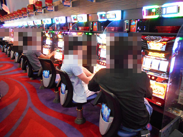 14時過ぎのパチスロでは、沖スロをはじめ、多彩な機種が活況となっていた。