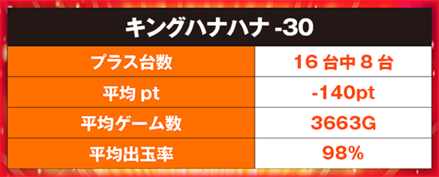 最終的には、16台中8台がプラス。平均ゲーム数は3663Gであった。