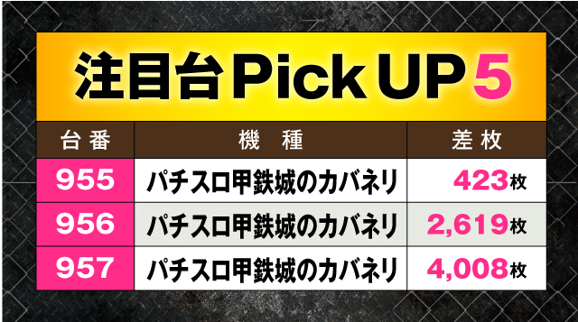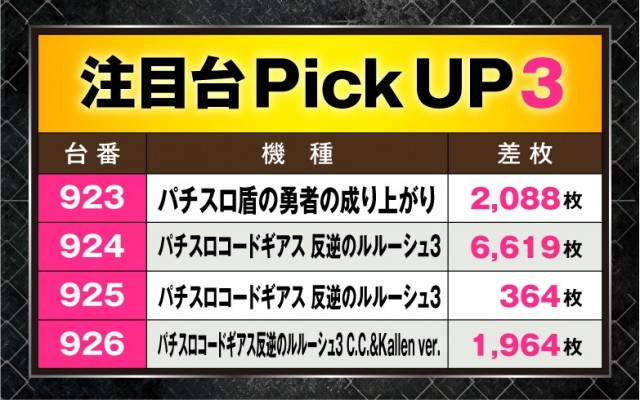 店内をチェックすると並びを中心にそこかしこで好調台が誕生していたのが目に付いた。6,000枚オーバーの優秀台があるだけでなく、なんと対象の全台がプラスと圧巻の結果だったことが印象に残っている。