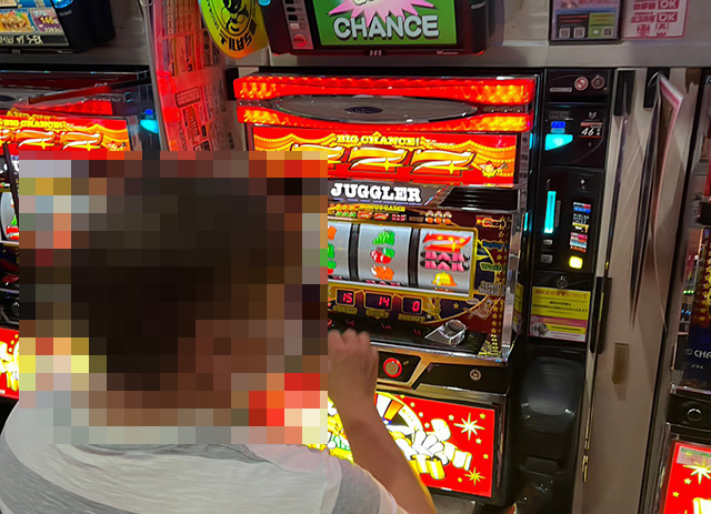 とくに目をひかれたのは、582番台の「マイジャグラーⅤ」から585番台の「アイムジャグラーEX」までが並ぶ場所。