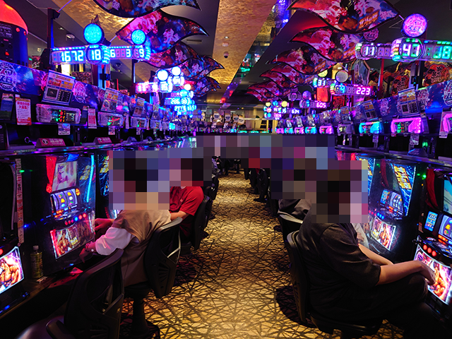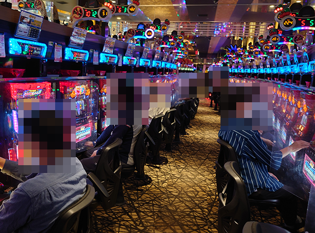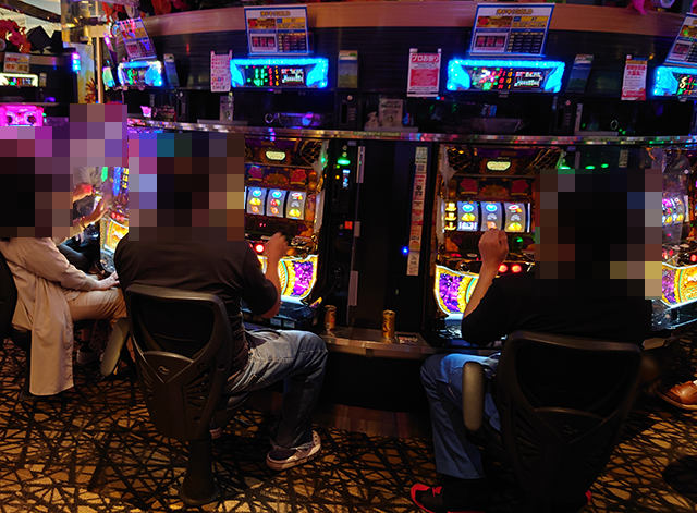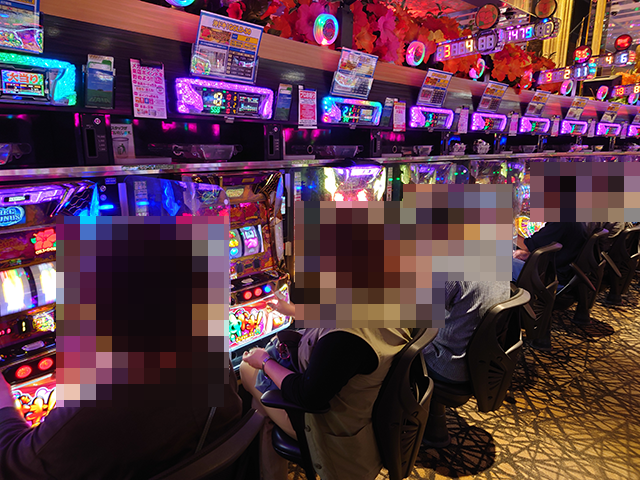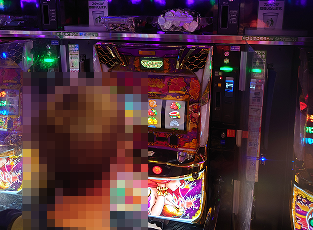 パチスロコーナーをまわっていると、あちこちで魅力的な場面に遭遇!