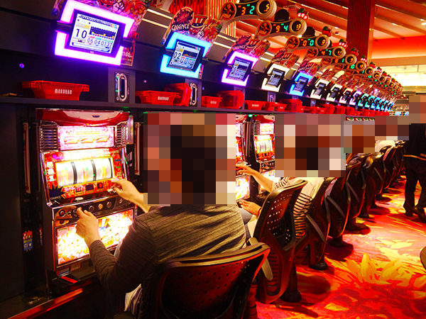 「ミリオンゴッド-神々の凱旋-」や「SLOT魔法少女まどか☆マギカ」といった定番機種も人気。楽しげに遊技している姿もみられ、明るい雰囲気となっていた。