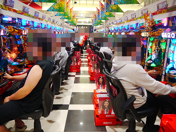 1円パチンコも海物語シリーズの空き台がほぼないといった状態。パチンコの醍醐味を存分に味わえているようで、明るいムードとなっていた。