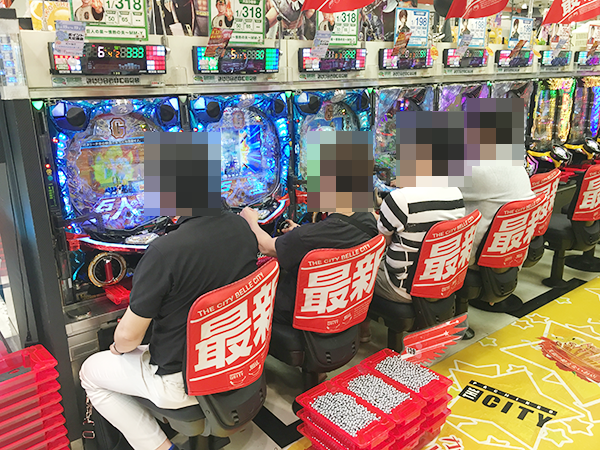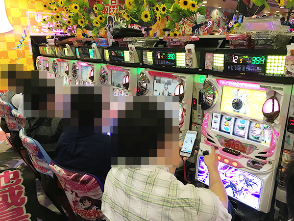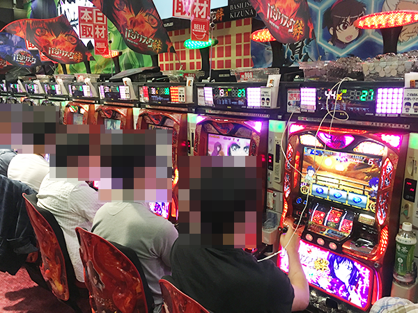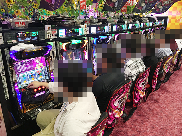 「ハナビ」やジャグラーシリーズといったボーナスタイプも活況。シンプルながら味のある告知演出を味わっている姿もあり、支持の厚さも感じられた。