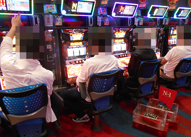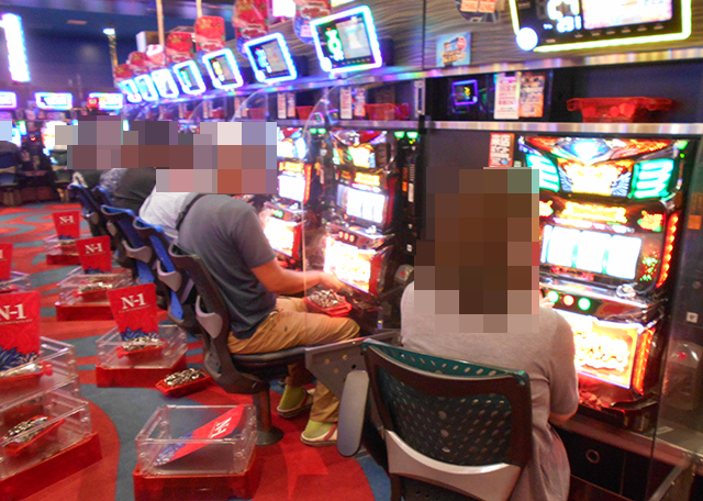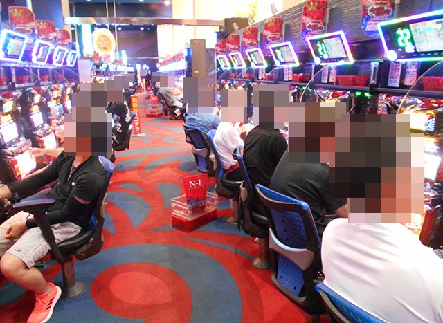 うれしそうに遊技をおこなっているプレイヤーが多く、いくつもの台で魅力的なシーンを確認している。
