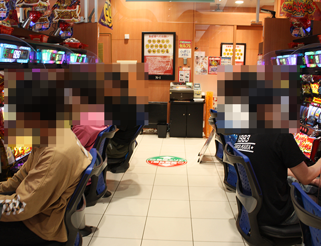 「キングハナハナ-30」や「ハナハナホウオウ~天翔~-30」など、4機種の沖スロが設置されているホールだ。