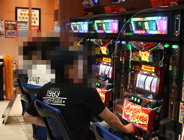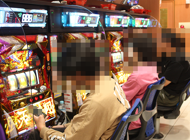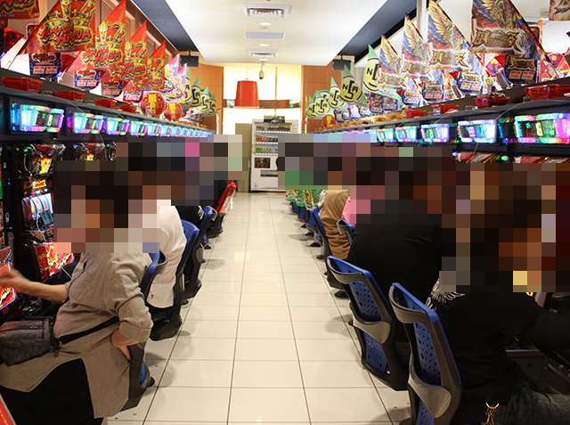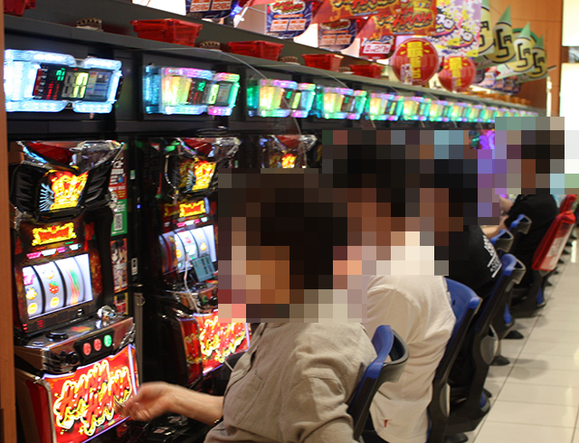 14時過ぎのパチスロで、とくに盛況となっていたのがハナハナシリーズだ。