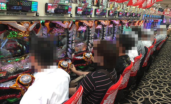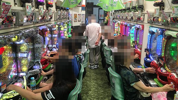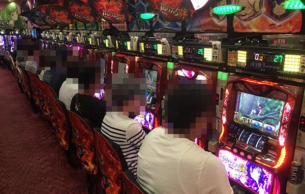 定番機種である海物語シリーズもにぎわっており、華やかな光景はいくつもの場所に広がっていた。