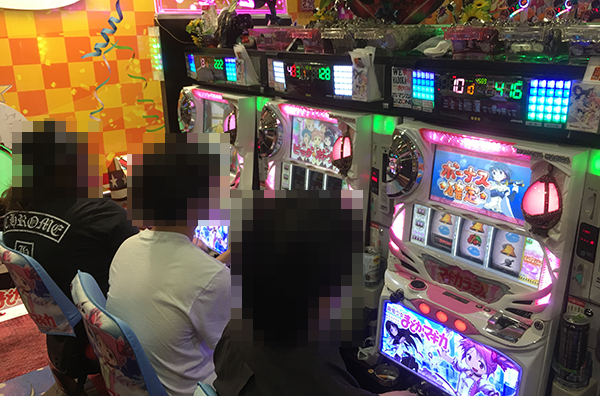 15時を過ぎた頃のパチスロのなかで、大きな盛り上がりをみせていたのは「SLOT魔法少女まどか☆マギカ」。遊技をしているプレイヤーの多くが笑みを浮かべており、機種の魅力をしっかりと堪能できていたようだ。