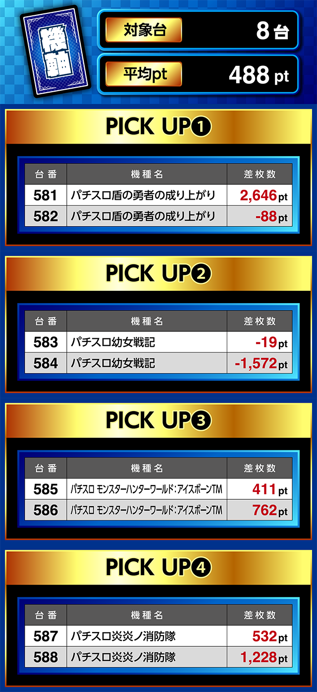 581番台の「パチスロ盾の勇者の成り上がり」は、2,646ptを記録。