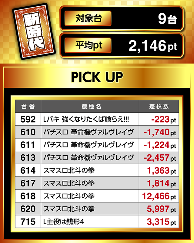 新時代・618番台「スマスロ北斗の拳」…12,466pt