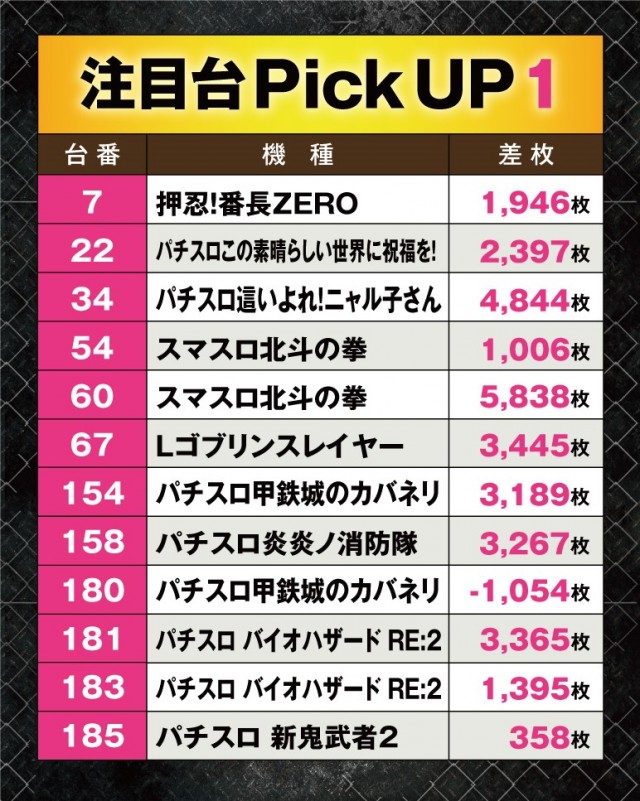 『パチスロ這いよれ!ニャル子さん』からは4,000枚オーバー『Lゴブリンスレイヤー』『パチスロ甲鉄城のカバネリ』『パチスロ炎炎ノ消防隊』『パチスロ バイオハザード RE:2』からは3,000枚オーバーと優秀な枚数を叩き出していた!
