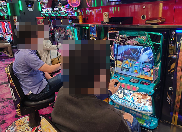 にぎわっている場所がいくつもあるなかで、ひときわ目立っていたのが『スロット ソードアート・オンライン』!