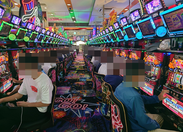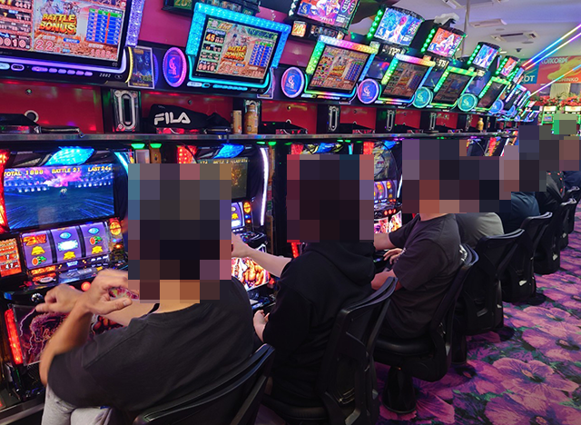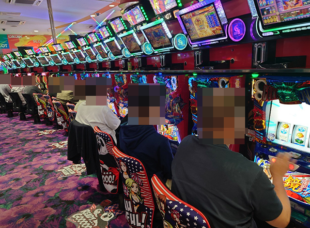 笑顔で遊技をおこなっている姿は、ホール全体でみても存在感があった。