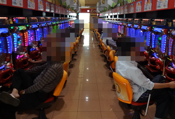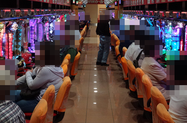 100円/185玉パチンコには知人同士で遊びにきているといったプレイヤーもみられ、なごやかな雰囲気も感じられた。