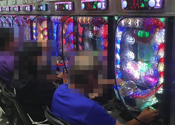 海物語シリーズを中心に、1000円/960玉パチンコも大きく活気づいており、じっくりと満喫できているといった姿をみられた。
