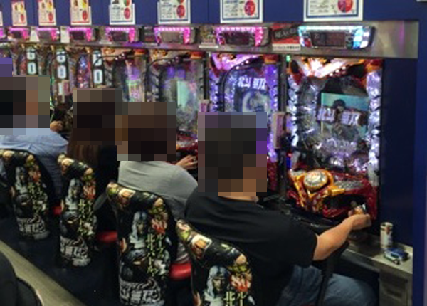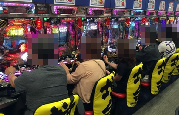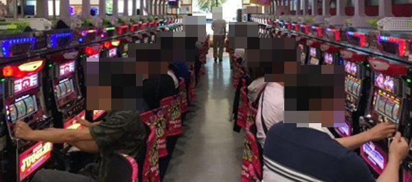 「アナザーゴッドハーデス」や「ミリオンゴッド-神々の凱旋-」、「バジリスク〜甲賀忍法帖〜絆」などもにぎやかな状況となっており、楽しそうな笑顔をみせるプレイヤーが多数。