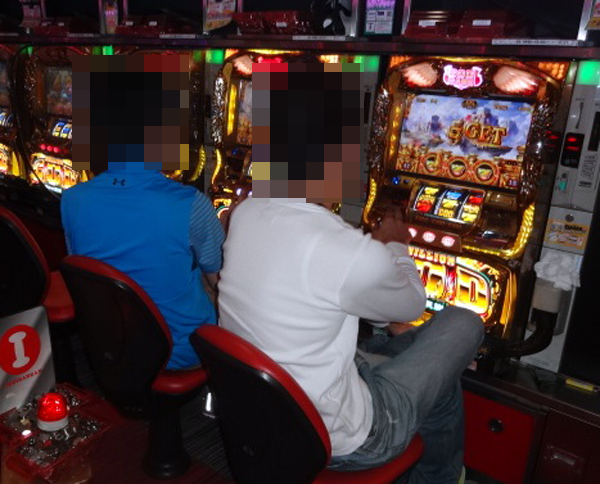 「バジリスク〜甲賀忍法帖〜絆」や「戦国乙女2〜深淵に輝く気高き将星〜」、「パチスロ ゴッドイーター」なども盛況で、笑顔をみせるプレイヤーが多数。