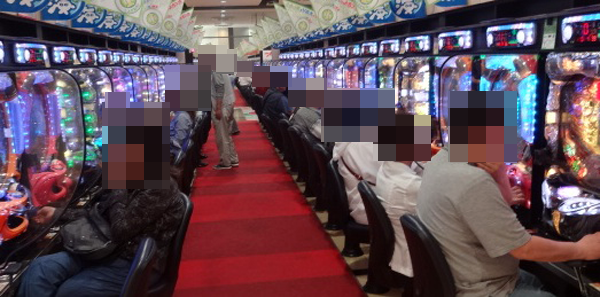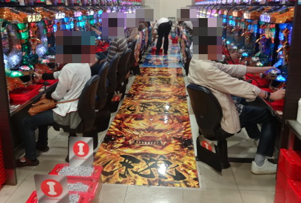 開店直後はパチンコ・パチスロコーナーともに多くのプレイヤーでにぎわっていた。