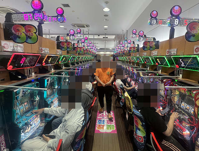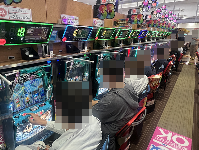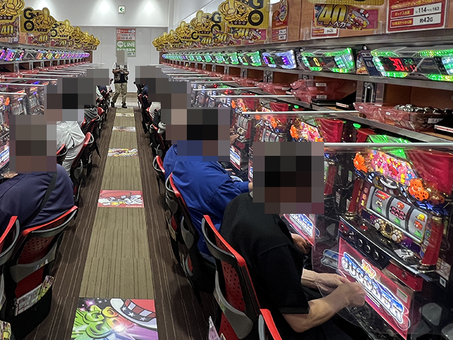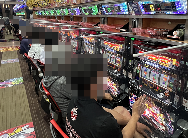 遊技を満喫しているようなプレイヤーが多く、大きくにぎわっていた『マイジャグラーⅤ』!