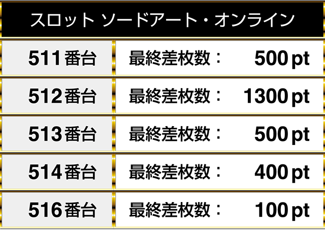 8台設置の『スロット ソードアート・オンライン』は5台がプラスpt!!