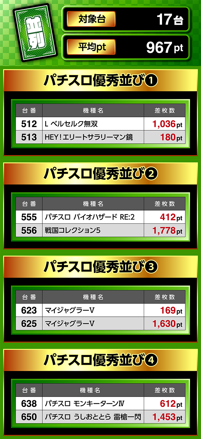 512番台の「ベルセルク無双」が1,000ptオーバー。