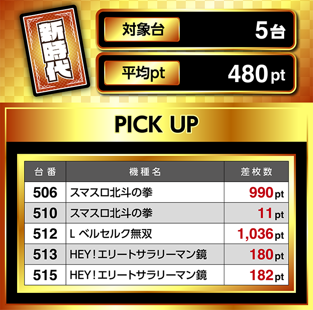 「スマスロ北斗の拳」では、506番台と510番台がプラスとなった。