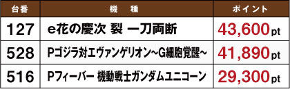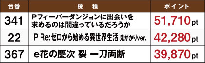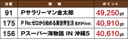 7月15日に実施された「ホームランボール」の模様をお伝えしていこう。先月は『新世紀エヴァンゲリオン~未来への咆哮~』などの人気機種が中心となったが、今月はそれとは違う人気機種が顔を覗かせている。『P Re:ゼロから始める異世界生活 鬼がかりver.』がまさにそれだが、3台ほど優秀台となっている。また、注目のスマパチ『e花の慶次 裂 一刀両断』も見逃せない。ニューギンの大人気シリーズである慶次シリーズ初のスマパチとなっており出玉性能も抜群。今後の動向も要注目となろう。