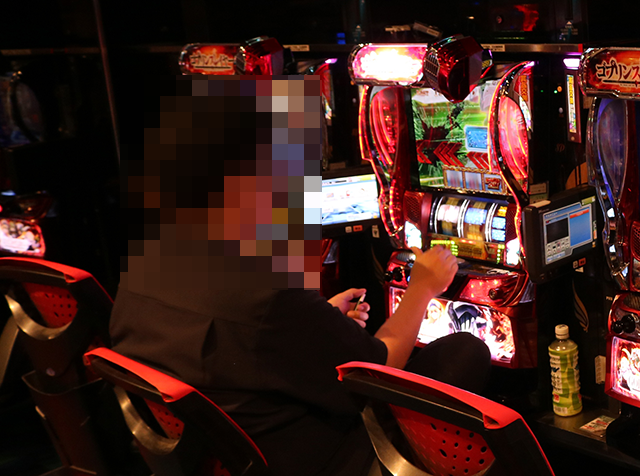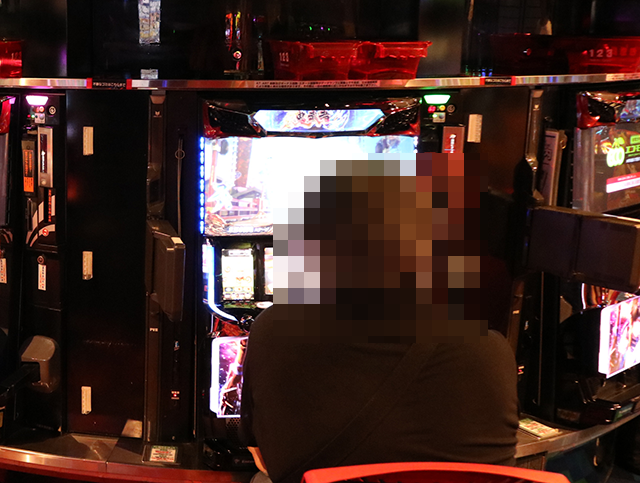 となりに並ぶ「パチスロ 新鬼武者2」でも、うれしそうに遊技をおこなっている姿を目撃。