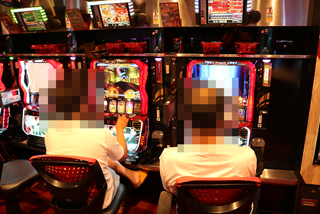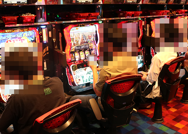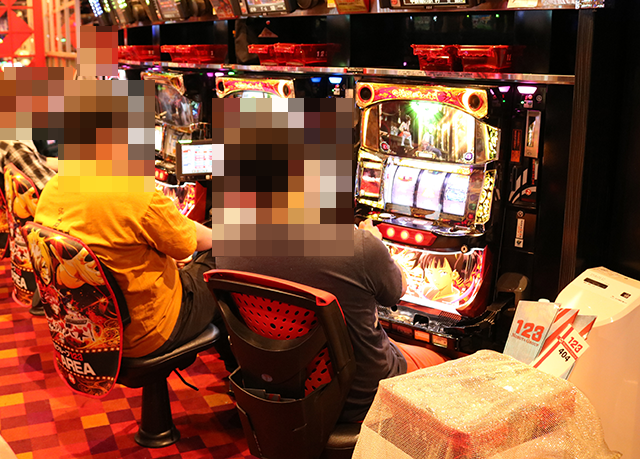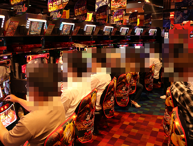 群青の旗を抱えてパチスロフロアをまわっていると、あちこちで楽しそうに遊技をおこなっているプレイヤーを目にした。