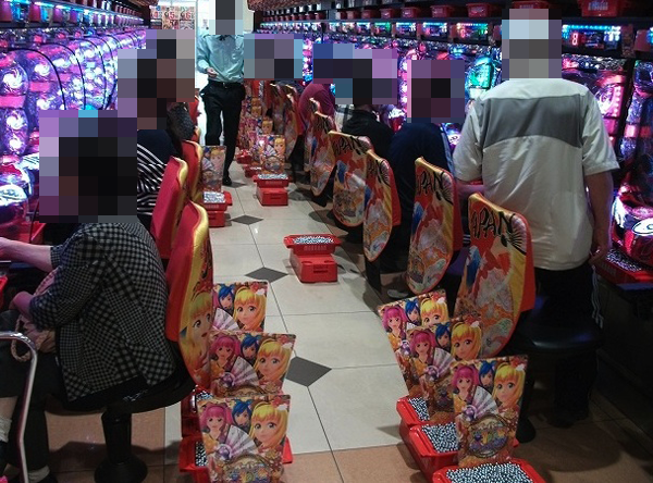 多くのプレイヤーが集まっているホール内はにぎやかで、パチンコ・パチスロコーナーともにさまざまな機種が満席状態となっていた。