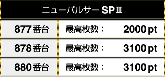 『ニューパルサーSPⅢ』も設置されている3台のすべてが2000pt以上を記録し、2台が3000ptを上回った。