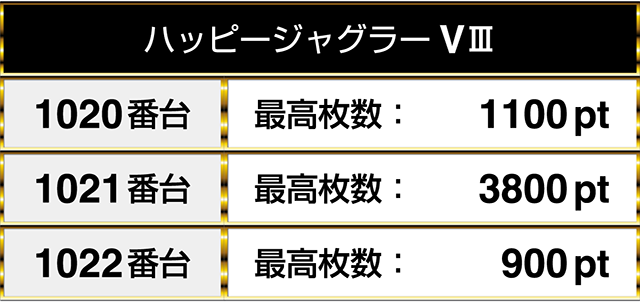 閉店時には『ハッピージャグラーVⅢ』の3台が並んでプラスpt!